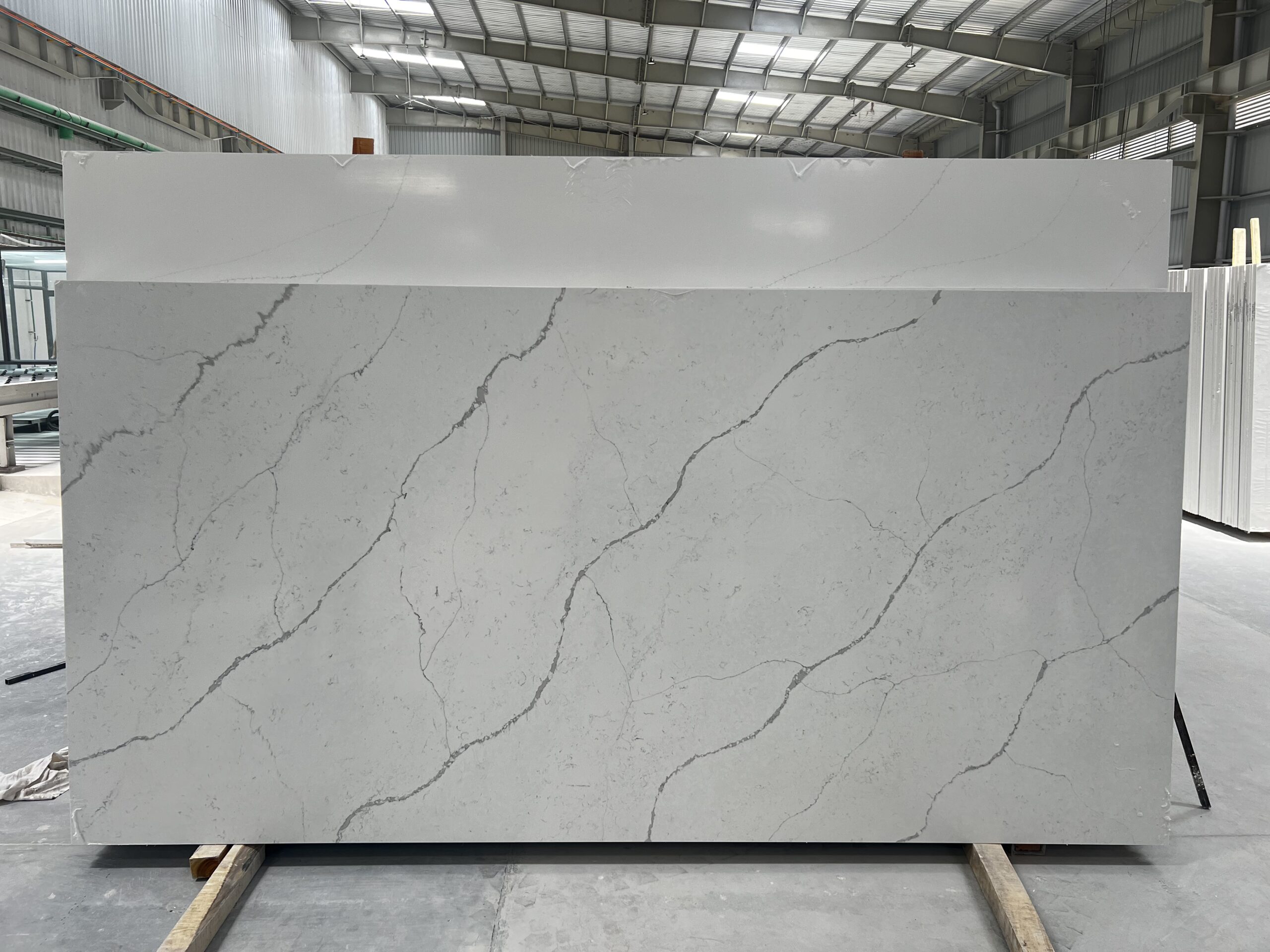 Calacatta Statuario Slabs feature a crisp white background with bold, dramatic grey veining, creating a striking and luxurious marble-inspired look. Renowned for its elegance and timeless appeal, this design is perfect for high-end kitchen countertops, bathroom vanities, feature walls, and flooring. Combining the classic beauty of Statuario marble with the durability, stain resistance, and low maintenance of engineered stone, Calacatta Statuario is ideal for both residential and commercial projects.